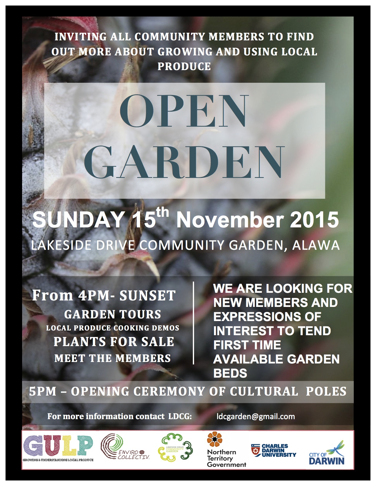 There will be garden tours, a quick snapshot of what to grow in the wet season and some local garden tea making demos by the GULP project.